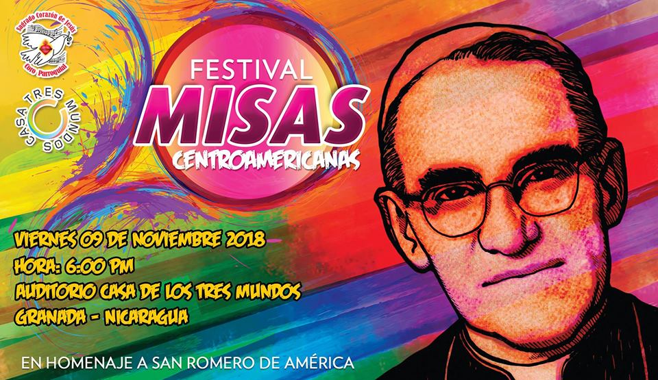 En colaboración con la Fundación Casa de los Tres Mundos presentamos: «El Festival de Misas Centroamericanas» un Homenaje a Monseñor Romero y dirigido a todos aquellos amantes Centroamericanos y Extranjeros de la Música Folklorica, este Concierto gira en torno a los Cantos de la Misa Campesina Nicaragüense y la Misa Popular Salvadoreña para tomar en cuenta el estudio de las Misas Centroamericanas para quienes deseen conocer el Alma de nuestros Pueblos y la conmoción espiritual y teologica que se ha producido en los último 39 años en donde se reflejan los conflictos que estos dos paises hermanos han enfrentado. Granada es un elemento con gran riqueza Cultural y hacemos de ella la sede de la V Edición de este simbolico Festival.